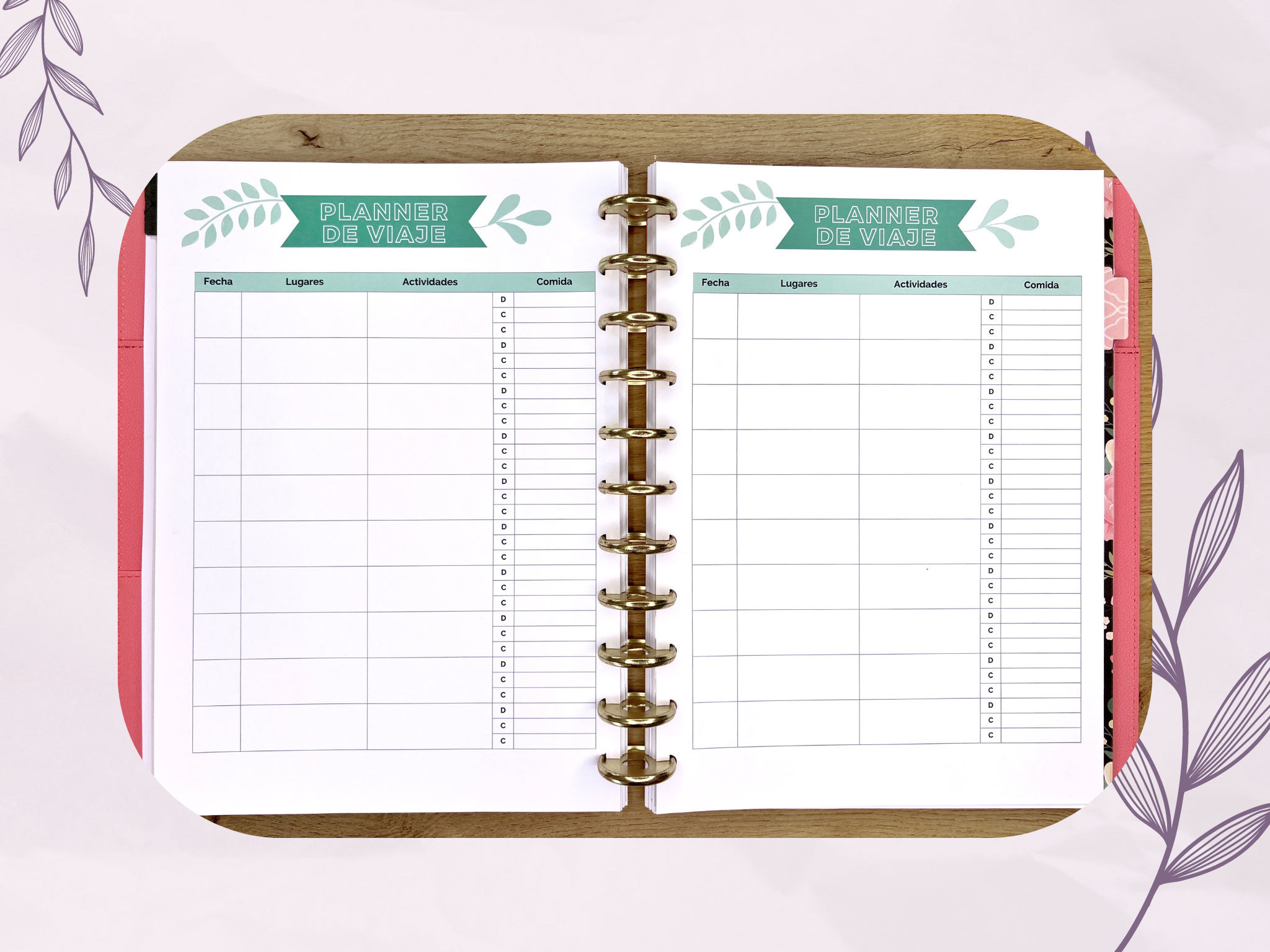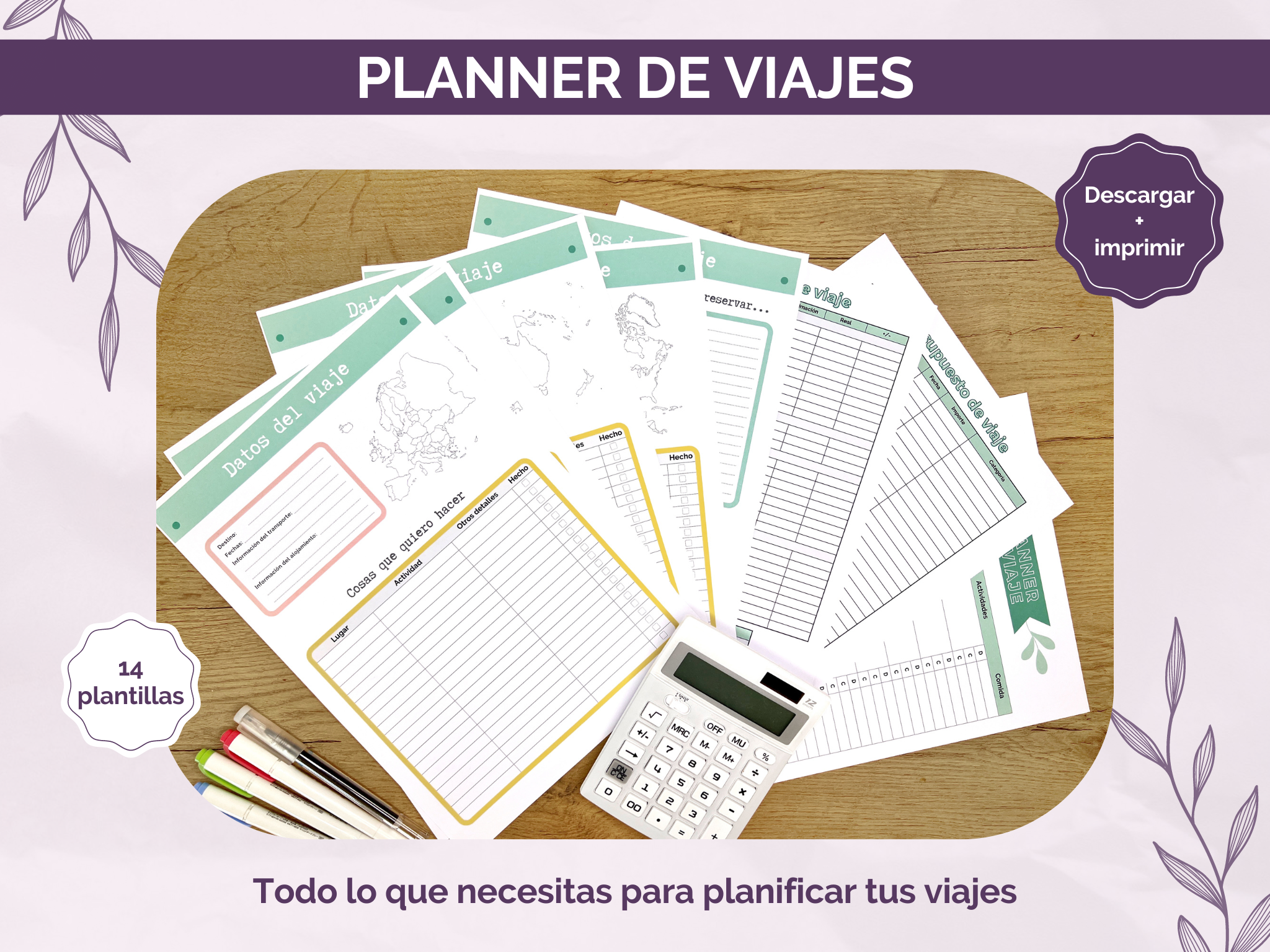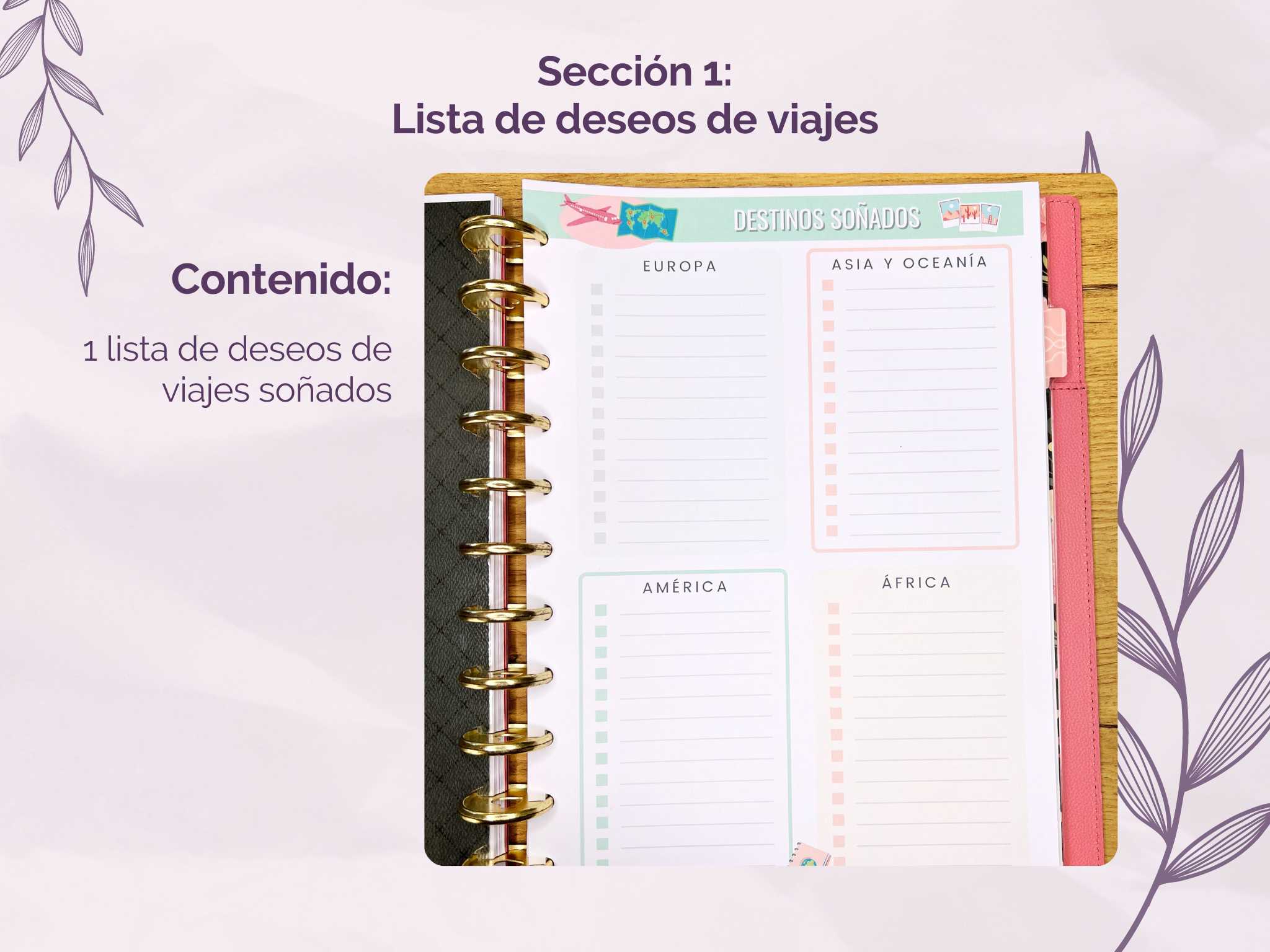 Completo planner con todo lo que necesitas para planificar tu próximo viaje.