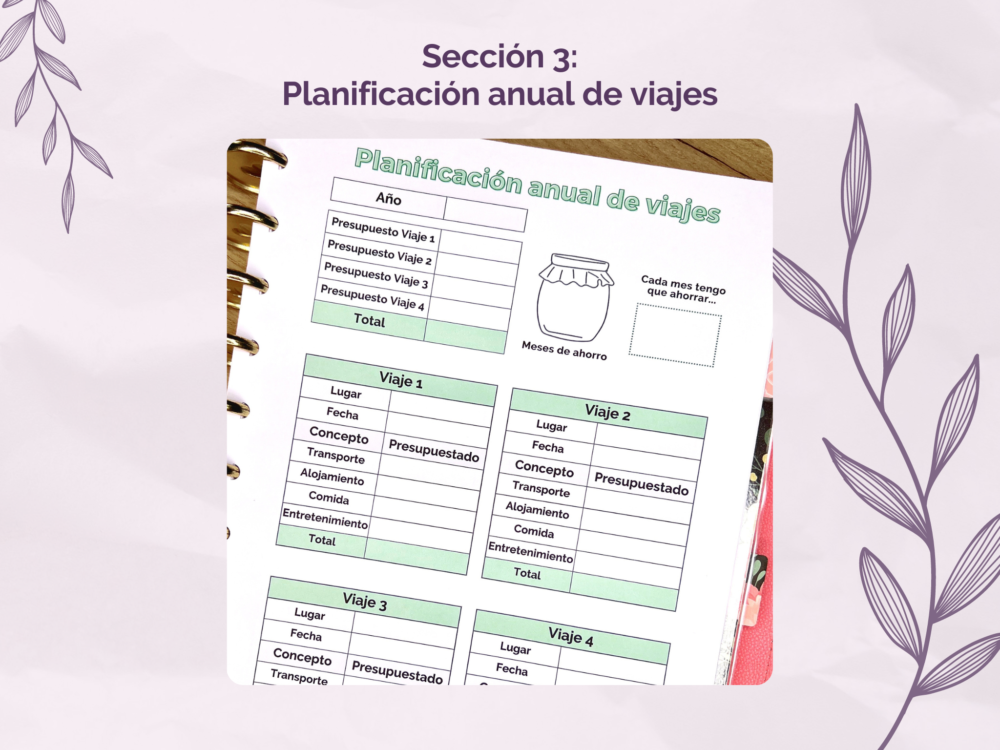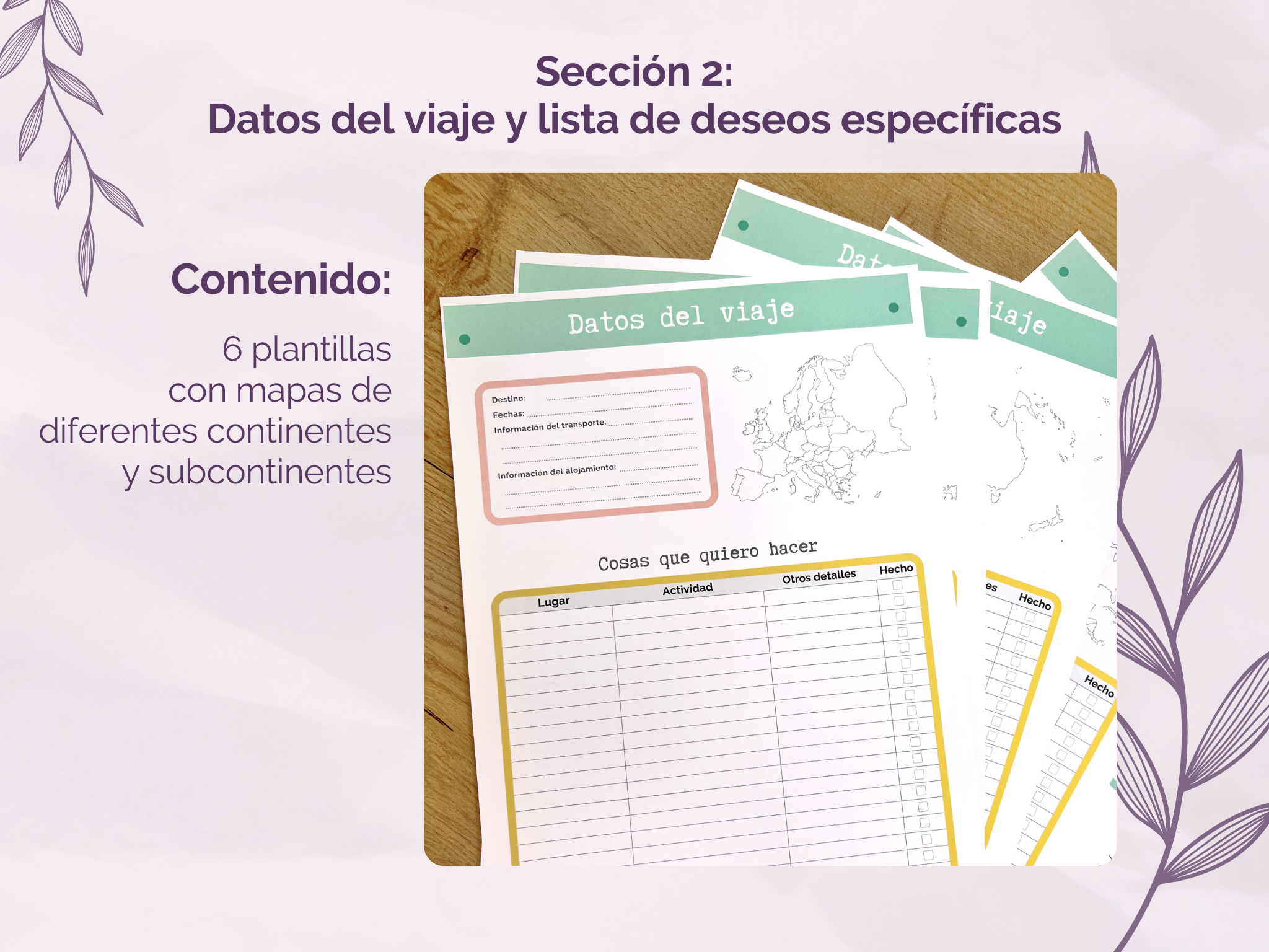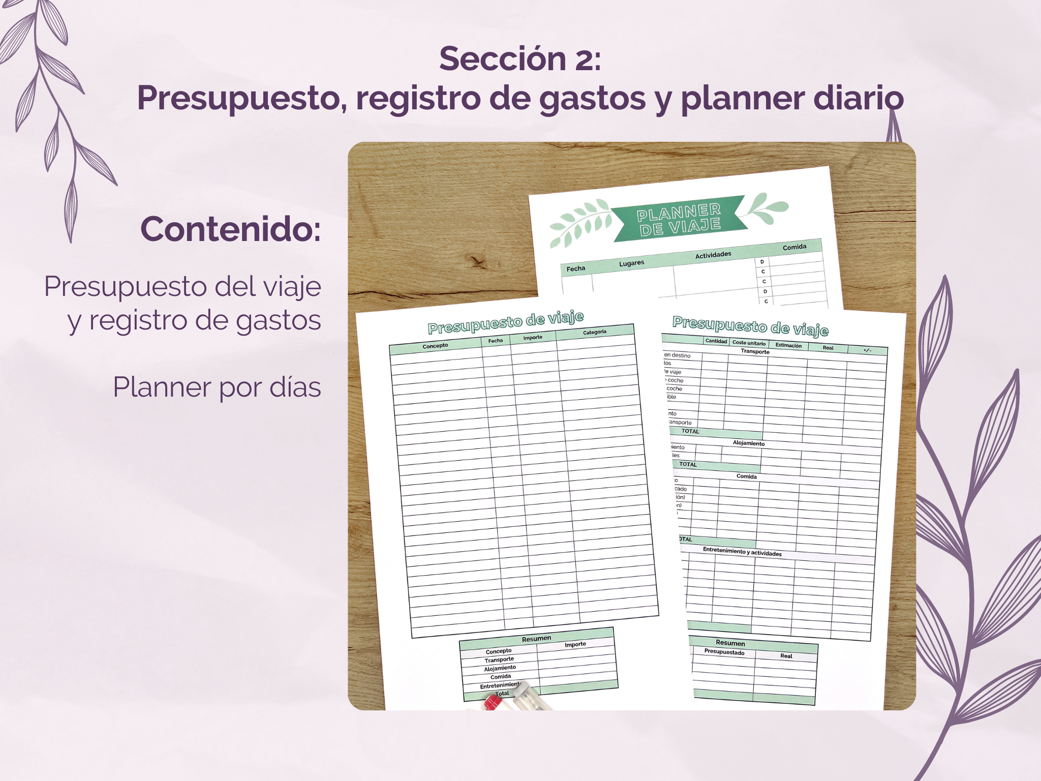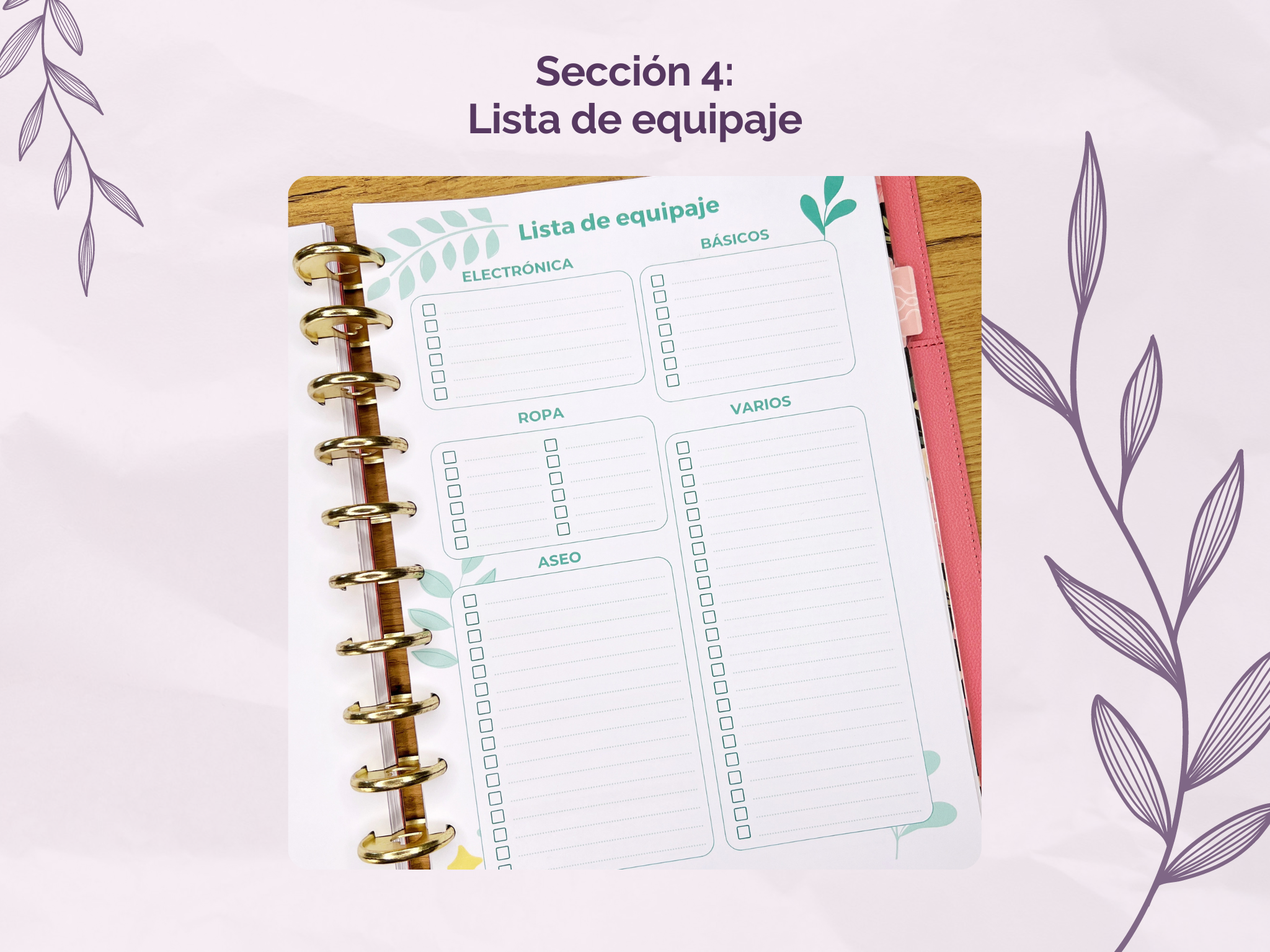 Completo planner con todo lo que necesitas para planificar tu próximo viaje.